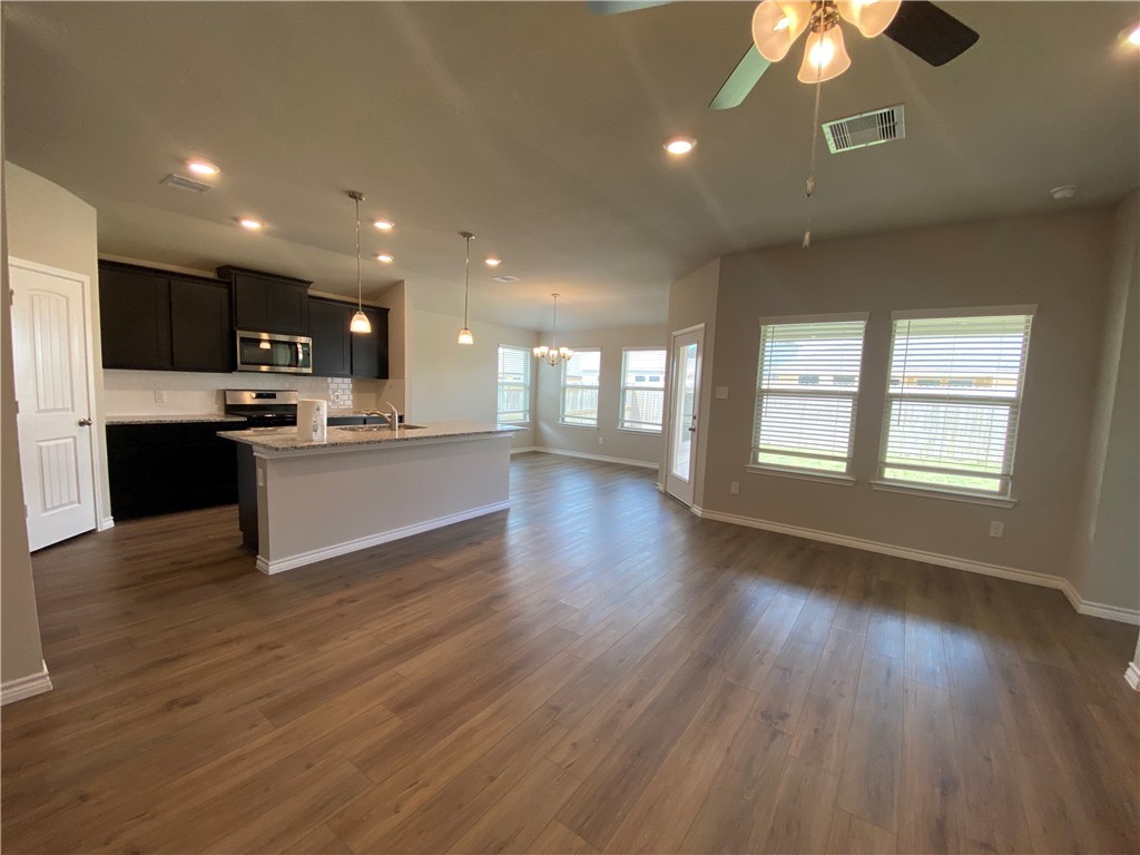 READY FOR YOU! Exquisite 4-bedroom, 3-bathroom home with game room in Southern Pointe! Beautifully constructed and offers an open concept floor plan with a spacious living room open to the kitchen, and breakfast area. Enjoy the gourmet kitchen featuring sparkling granite counters, island, espresso cabinetry, pantry, and stainless appliances. The primary suite has oversized tile shower and huge walk-in closet that connects through to the laundry room. Smart home features include video doorbell, programmable thermostat, and smart lights at the front entry. Conveniently located right off Highway 6, you're just minutes to shopping, medical centers, schools, and restaurants in Tower Point. Don't forget the vinyl plank flooring throughout common areas, covered patio, and more! Schedule your showing today and make it yours! Washer/dryer included.
