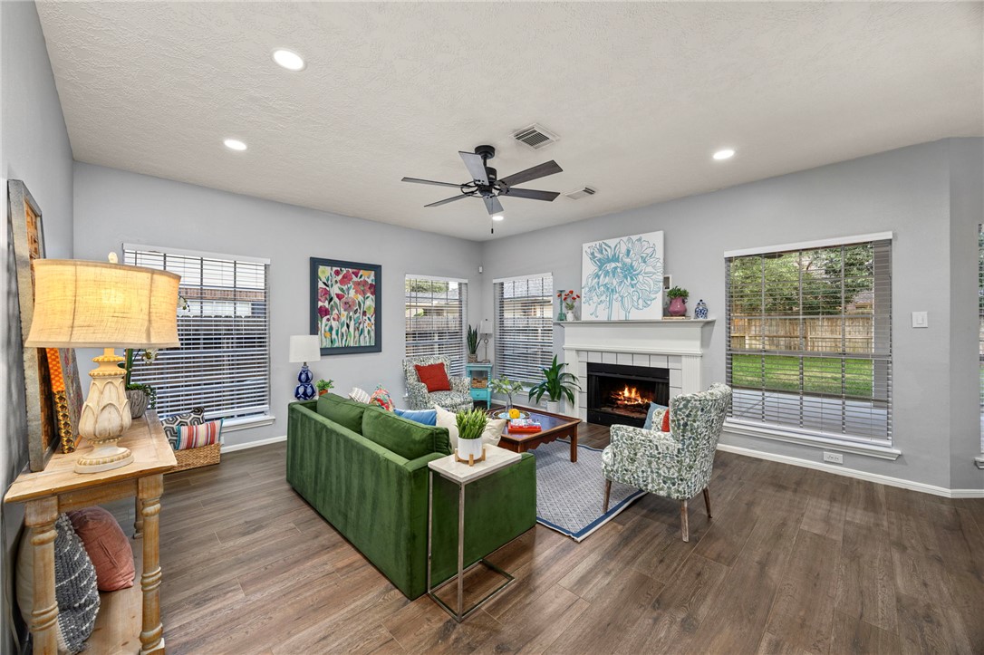 This lovely home located in the desirable Quail Forest community, is close to Hamilton Elementary and Hamilton Middle School in highly acclaimed Cy-Fair ISD. This move-in ready has a layout designed for modern living. Enjoy an open floor plan, private study with French doors for work from home privacy, and a versatile flex room that can be used for a playroom, game room, or formal dining. Notable recent upgrades include new roof, luxury carpet, Nest thermostats, LED lighting and new blinds all installed in 2024. The backyard is an entertainer’s dream with a custom 17ft x 38.5 ft patio featuring intricate wood ceiling detail, recessed lighting, ceiling fans, and a natural gas connection for grilling and outdoor heaters for year-round gatherings. Other highlights include updated tile covering the first floor, granite kitchen counters, stainless steel appliances, and durable Hardie plank siding. This home has never flooded. Don't miss this rare opportunity in Quail Forest!