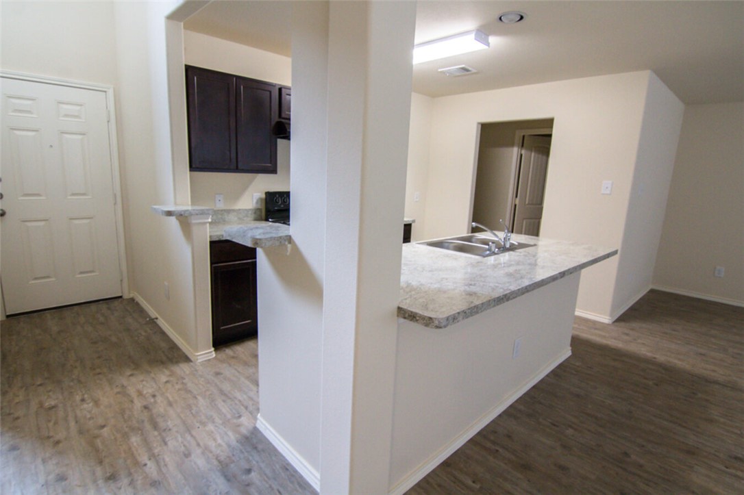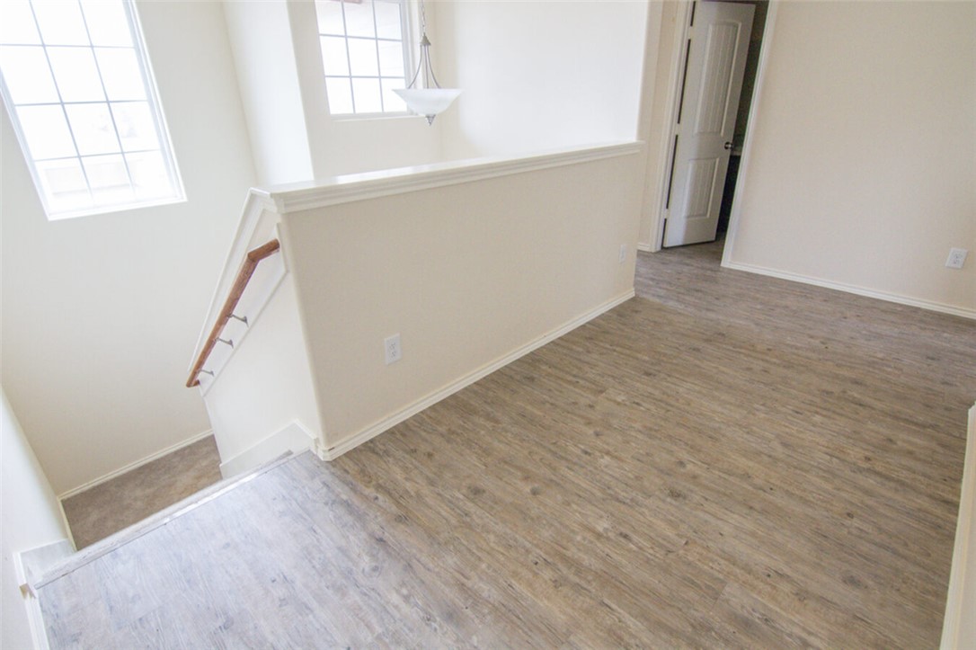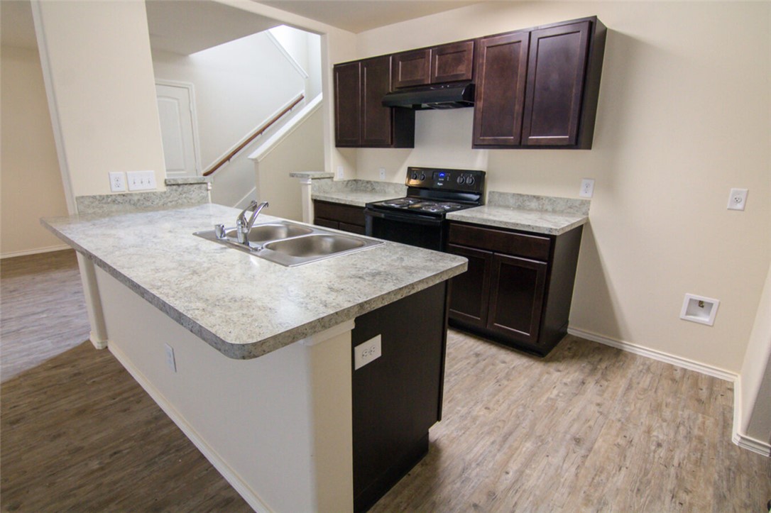 The Reveille plan - The first floor of this home is a great family gathering area. There is a dining room area as you enter, a great open living room with views into the kitchen, and half bath conveniently near the kitchen and living room. Upstairs has your master bedroom and master bath, 2 bedrooms, laundry room, and another full bath. Features wood-grain vinyl plank flooring, two-car garage, fenced backyard, and a sprinkler system. All homes are SimplyMaintained for a $100 monthly fee that includes front and back yard lawn care and exterior pest control.