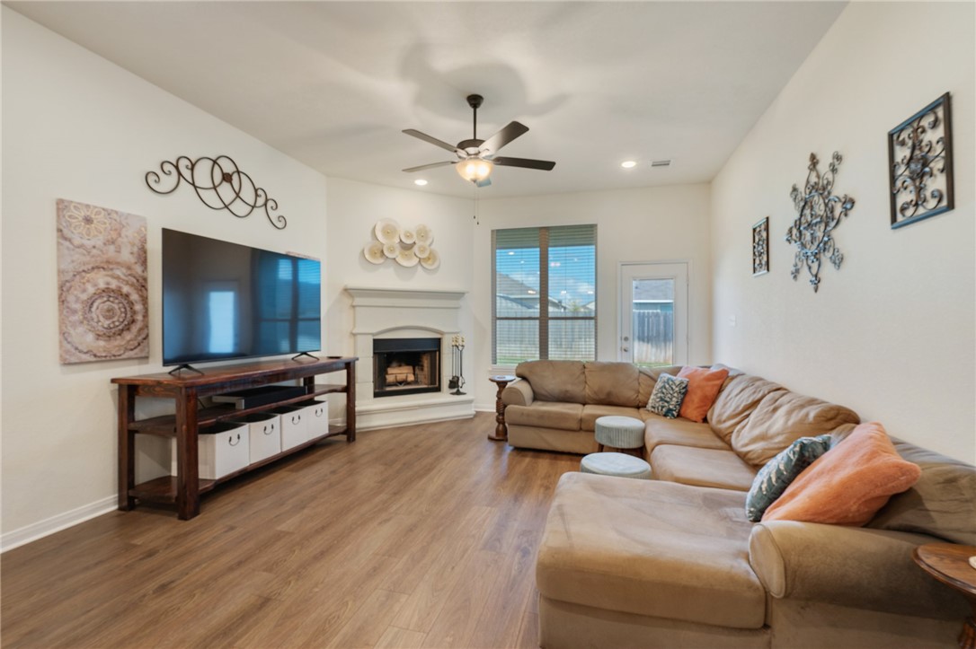 Ceiling fans, plush carpets, and ample closets complete your comfortable bedrooms, the grandest of which is the primary suite featuring a pair of walk-in wardrobes and double doors that reveal a stylish ensuite with dual vanities, linen closet and an 60” oversized step-in shower with seat. Take gatherings out to the covered patio and verdant backyard where you can relax in seclusion. Notables include upgraded cabinets in the laundry nook, solar screens as an add-on at 90% tint, an attached 2-car garage, and proximity to Texas A&M and the amenities of Bryan/College Station. Make this your next home while it’s still available!