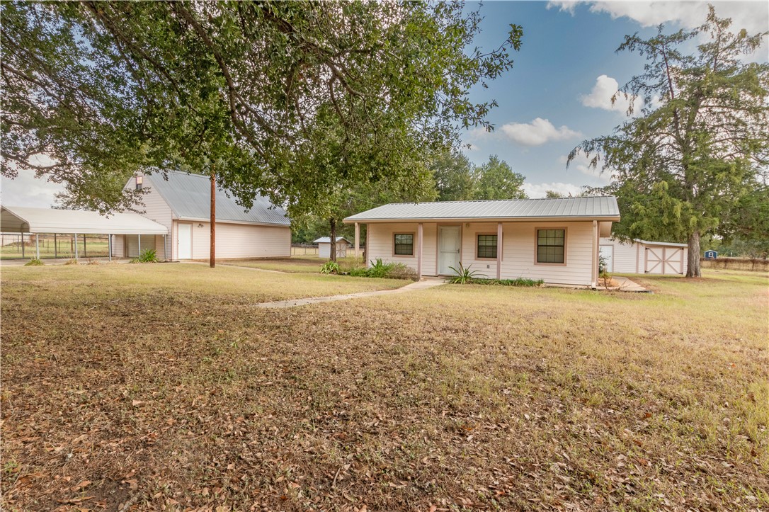 Charming cottage on 2.26 acres with beautiful trees on the edge of the wonderful community of Gause, TX. Built to last this 1 bedroom 1 bath home is under metal roof with hardi plank siding and gutter system. On the inside you find tile floors and red oaks cabinets that provide ample storage space throughout and a large master bath recently remodeled in 2023 with tankless water heater. Completely fenced with pipe fencing along the road this corner lot has two entrances and includes a paved driveway to an over 900 sq ft insulated garage with shop space and loft storage. A second shop space/garden shed provides additional storage. Concrete sidewalks between buildings. Gause Water Meter. No restrictions.