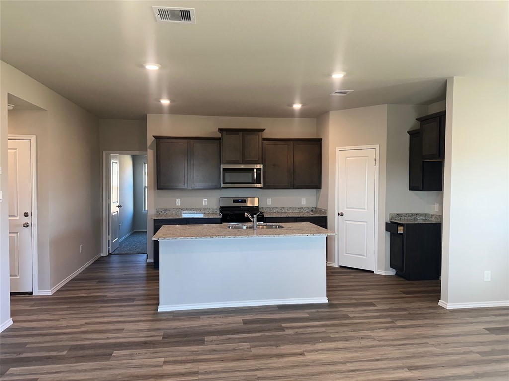 The Camden is a single-story, 3-bedrooms, 2-bathroom home featuring approximately 1,501 square feet of living space. The entry opens to two secondary bedrooms and bath with hallway closet. An open concept large combined dining and family area leads into the center kitchen. The kitchen includes a breakfast bar and separate pantry. The main bedroom, bedroom 1, features a sloped ceiling and attractive bathroom with dual vanities and spacious walk-in closet. The standard covered patio is located off the family room. Additional finishes include granite countertops and stainless-steel appliances. You’ll enjoy added security in your new D.R. Horton home with our Home is Connected features. Using one central hub that talks to all the devices in your home, you can control the lights, thermostat, and locks, all from your cellular device. With D.R. Horton's simple buying process and ten-year limited warranty, there's no reason to wait!
