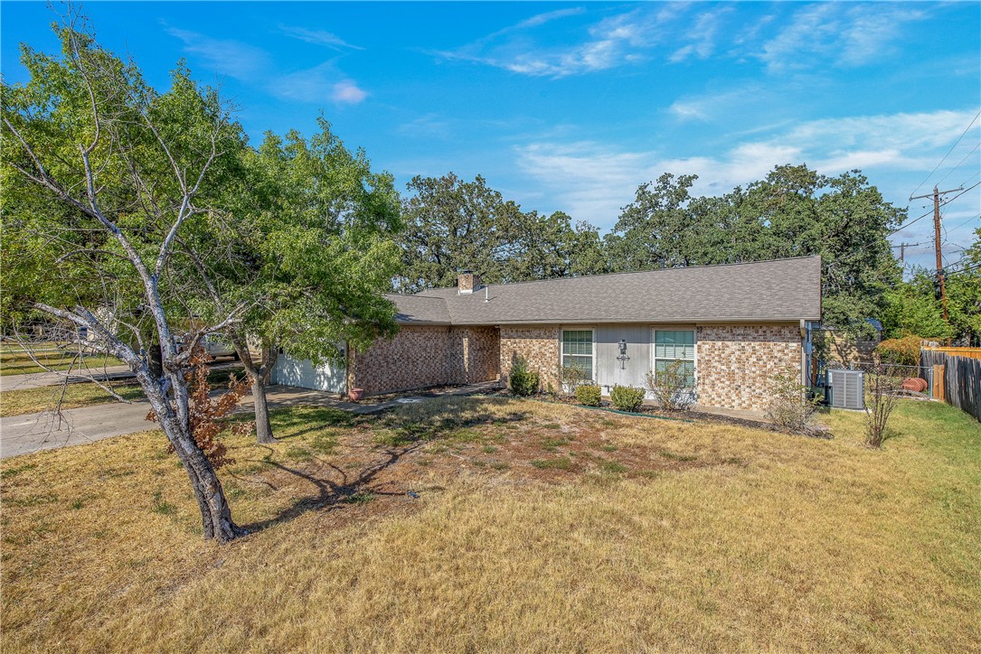 Location!!! Come see this charming home in the popular Oaks subdivision. Spacious living area with wood beams, cathedral ceiling and cozy fireplace. Large primary bedroom has a walk-in closet! BONUS area could be used as study, office, or hangout area. HVAC replaced in 2021 and newer water heater. Newer roof, windows, and silent garage door. Plenty of room in the backyard with extended covered patio and a nice and clean 12x20 Morgan building. Close to everything with easy access to restaurants, TAMU, Blinn, hospitals, schools, and more. Pardon the City of Bryan storm sewer improvements projects, which also means a new nice wide road. This project is underway and currently still on Hillside drive.
