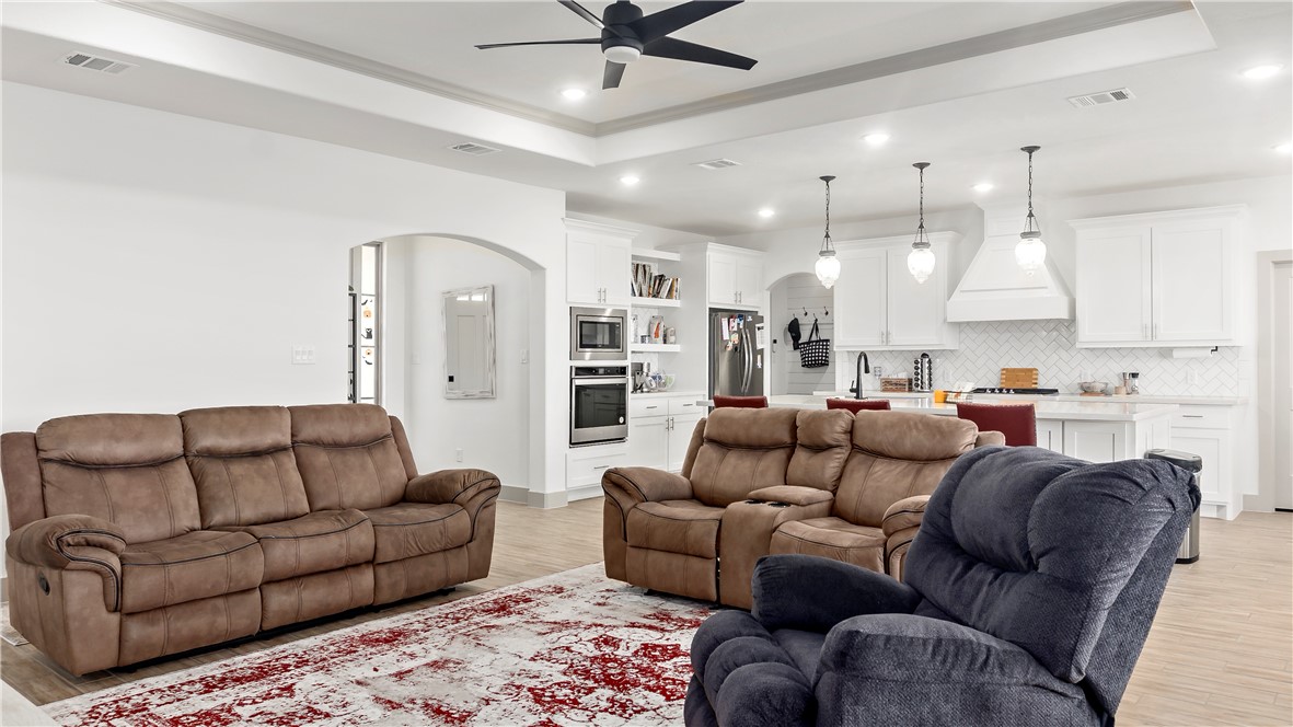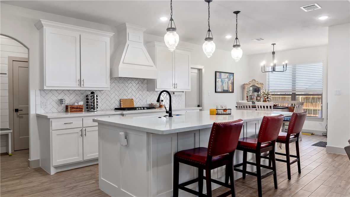 Located in the highly sought-after Austin Colony, this stunning 4-bedroom, 2.5-bathroom home is nestled on a cul-de-sac. The kitchen area is a chef's dream, boasting stainless steel appliances, a large island that doubles as an eating bar, and a walk-in pantry. It’s designed for both style and functionality, with a gas stove top that includes hinged grates for easy cleaning, and a dedicated coffee bar for your morning ritual. Whether you're preparing a gourmet meal or entertaining guests, this kitchen is the heart of the home. The spacious primary suite is a true retreat, featuring a luxurious bathroom with dual sinks, a large walk-in shower, and an expansive walk-in closet that provides ample storage. Inside, oversized closets throughout offer abundant storage, while the large garage is equipped with built-in shelving and an epoxy-coated floor for durability. Designed for relaxation and socializing, the extended back porch features a patio TV and refrigerator, creating the perfect setting for outdoor gatherings. The backyard also includes a shed with electricity, a workbench, and lights—ideal for DIY projects. There’s convenient access through the back fence gate, providing additional parking or entry. With its thoughtful layout and modern amenities, it’s an entertainer’s dream and a true haven for everyday living.