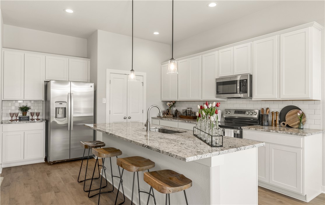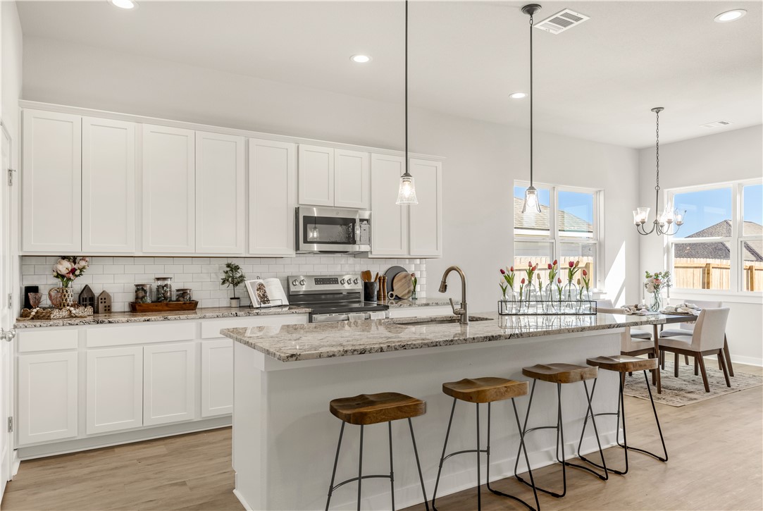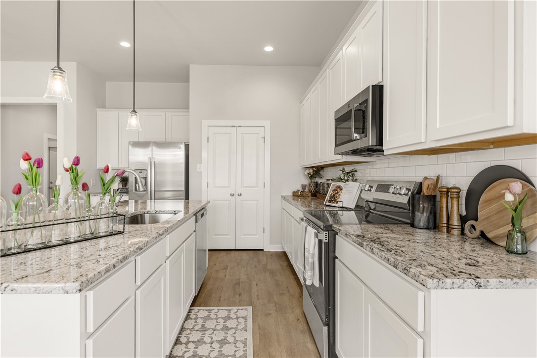 Avonley Home introduces one of their newest two-story homes, "The Azlea"! Offering 5 bedrooms and 3 baths this charming floorplan features luxury vinyl plank flooring throughout common areas. Large L-shaped kitchen overlooks an open living area and adjacent dining nook. A restful master suite welcomes you, with En-suite boasting a deep garden tub and separate shower. The master walk-in closet connects to home laundry area, an everyday convenience you'll love! Homes upstairs bedrooms center around an oversized flex space. The downstairs study provides ample space for work and play. Walking paths leading to the playground, soccer field, and large green space are an everyday convenience when you live in Rudder Pointe!