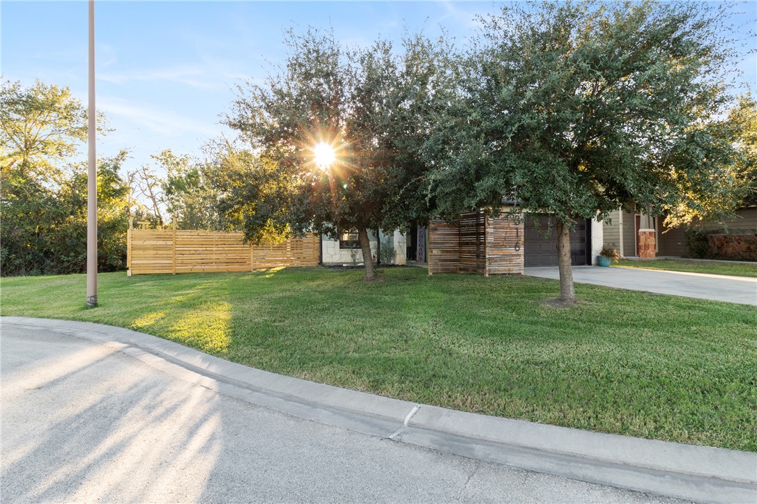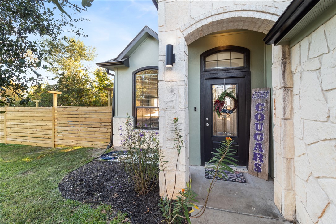 This House is sitting on a one of a kind lot in South College Station. You won't believe the location, with a greenbelt behind you, only one neighbor on one side, and a whole cul-de-sac to yourself, huge field to play in, with green-space and a walking trail at your doorstep! Wonderful location, easy to hit shopping, work, and all four schools close by. New paint outside and in, updated lighting, and the original upgraded stone and brick elevation. Vinyl plank flooring throughout the house, tile in baths, large master with large soaking tub and separate shower. The kitchen has granite counters, stainless steel appliances, gas cooking and a built in microwave. There are no back or left side neighbors, enjoy your private yard and setting that includes a newer exterior deck that was added onto the concrete covered patio. You'll hear the 2 resident owls at night, all sorts of critters, frogs & birds. Short 10 minute drive to Texas A&M Campus, Tower Point or Jones Crossing are both close by.