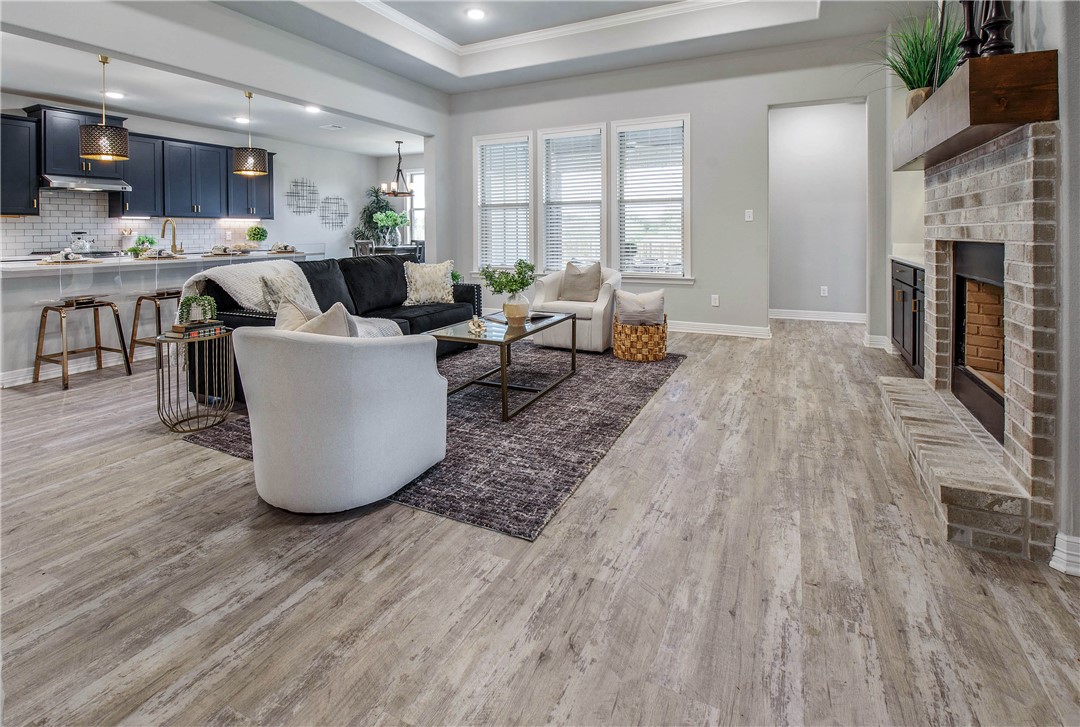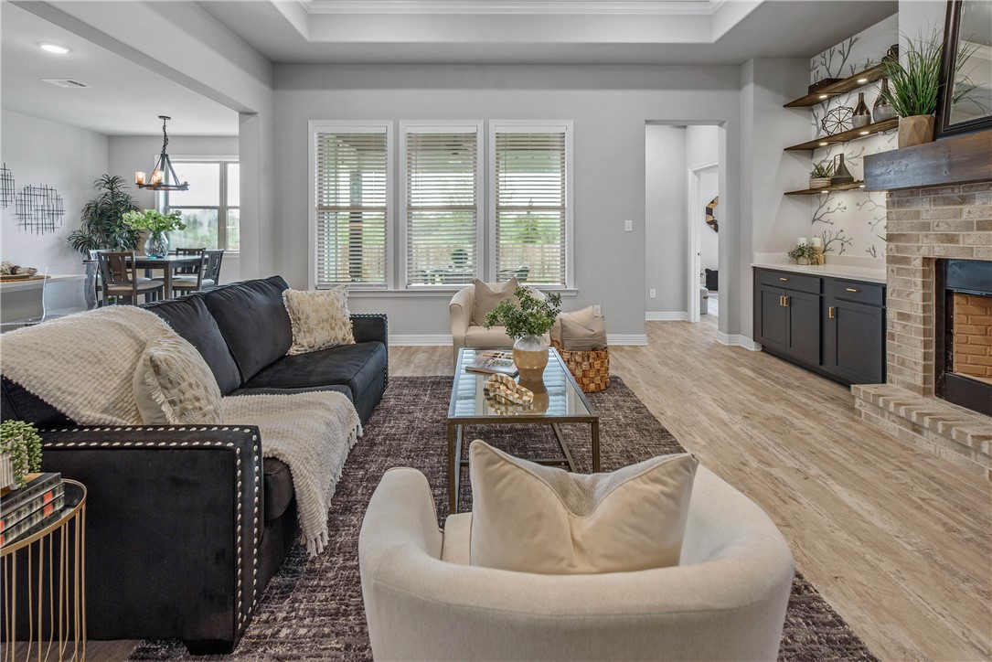 Welcome to this exceptional 3-bedroom, 3-bath retreat with study/flex space by Blackrock Builders, nestled in the desirable Greenbrier subdivision. With no rear neighbors, this home offers a private escape in a prime location. The spacious great room with abundant natural light, centered around a cozy fireplace and hand-painted jewel box wall with display shelves, sets the stage for memorable gatherings. The impressive kitchen with granite countertops, stainless steel appliances, and a versatile island with an eating bar, is ideal for hosting guests. The primary suite is designed for comfort, featuring a luxurious shower with a rainfall shower head, dual-sink vanity, soaking tub, and large walk-in closet. Outdoor living is enhanced with a covered back patio and a unique beach sand patio for relaxing or entertaining. The attention to detail throughout the home makes this property truly exceptional.