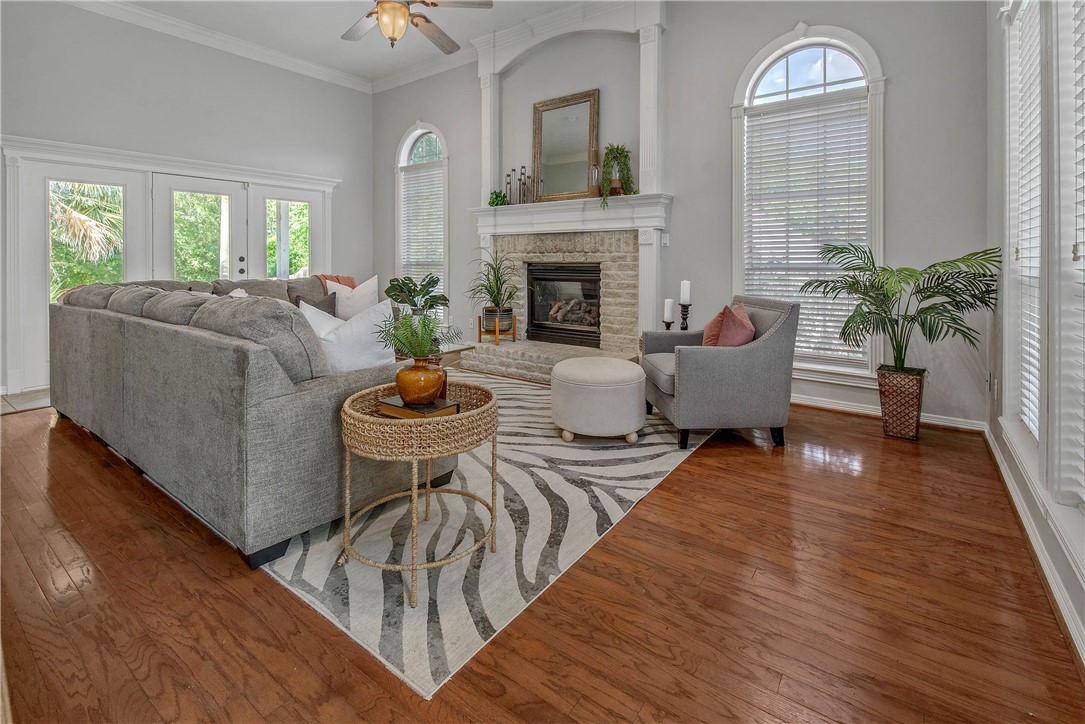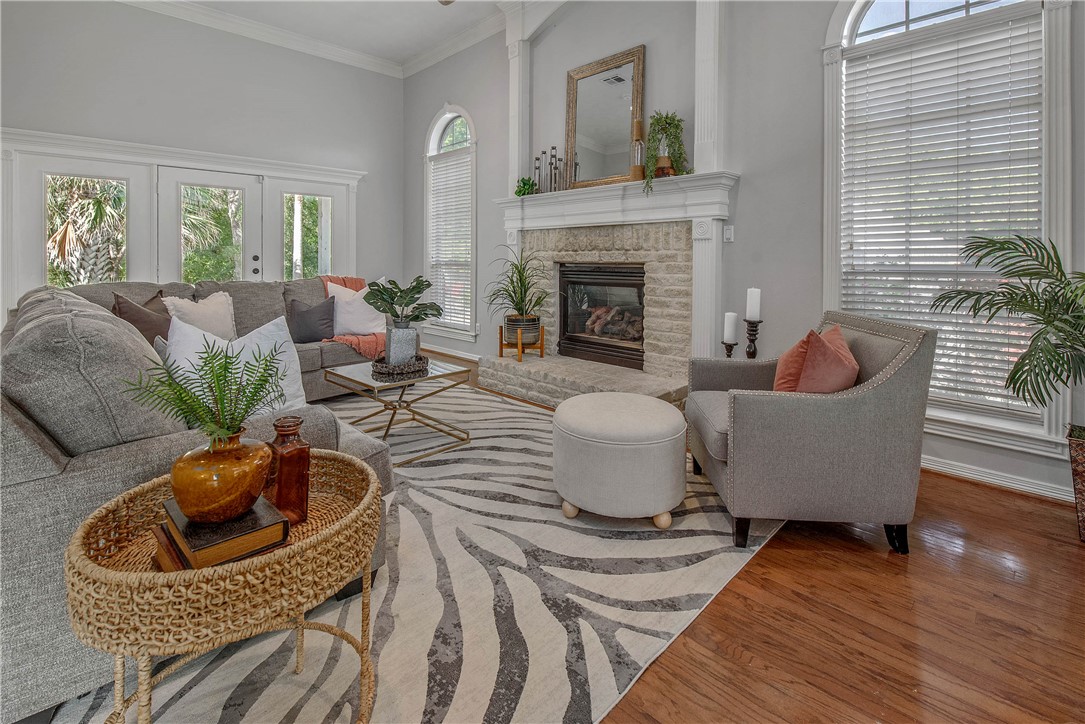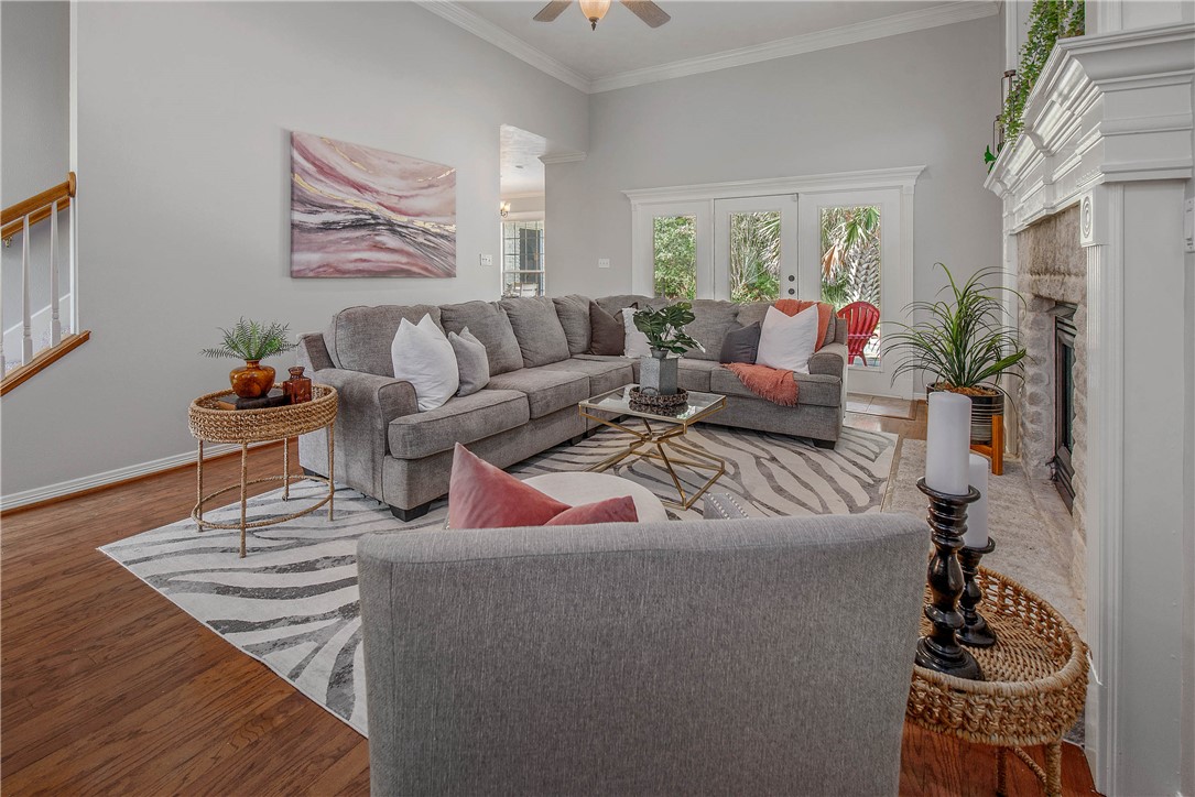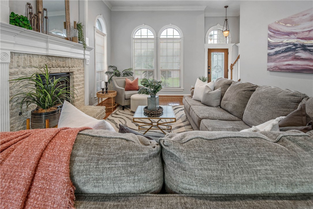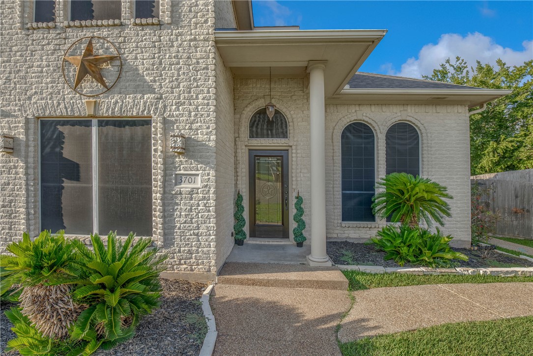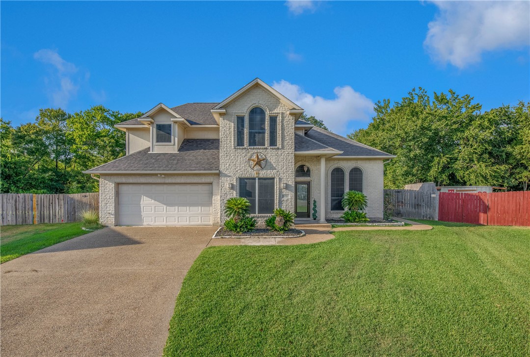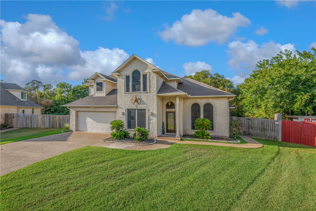 Nestled in a quiet cul-de-sac in Bridle Gate Estates, this beautifully designed 4-bedroom, 2.5-bath home with flex room offers a blend of comfort and style, ideal for both relaxation and entertaining. The high ceilings and custom trim work highlight the home’s upscale finishes. The spacious master suite on the main level features an lovely bath with a separate shower, soaking tub, and a mini split A/C unit for enhanced energy efficiency (the previous owner was a nurse that worked nights and wanted to be able to control just the temperature in the master bedroom while sleeping during the day), complementing the foam attic insulation and solar screens. The main floor also includes a living area anchored by a stone fireplace, a study/bonus/flex room, powder bath, and a kitchen with a breakfast area overlooking the pool and outdoor entertainment area. Upstairs, you will find three generously sized bedrooms, a full bath, and dedicated office, crafting, gift-wrapping or study area. The backyard is an entertainer’s dream, complete with a sparkling pool, hot tub, and lush landscaping, offering a private outdoor oasis. Additional features include a two car garage and shed for ample storage. This home is a must-see for anyone looking for luxury, practicality, and a prime location just minutes from all Central College Station conveniences.