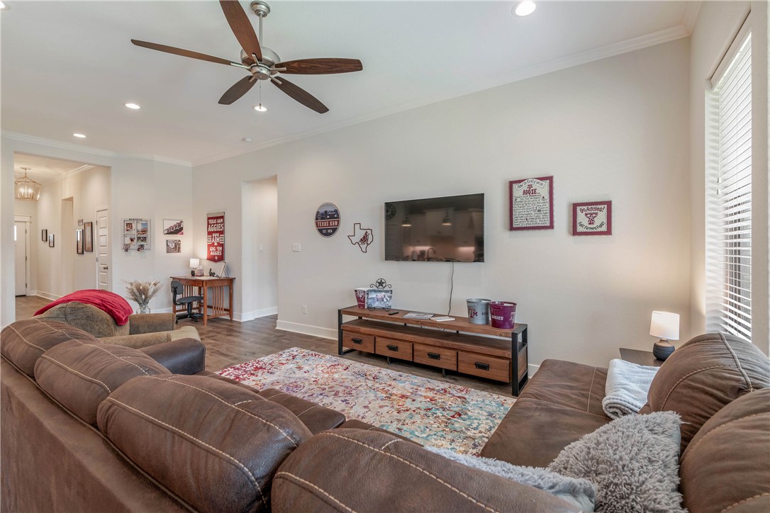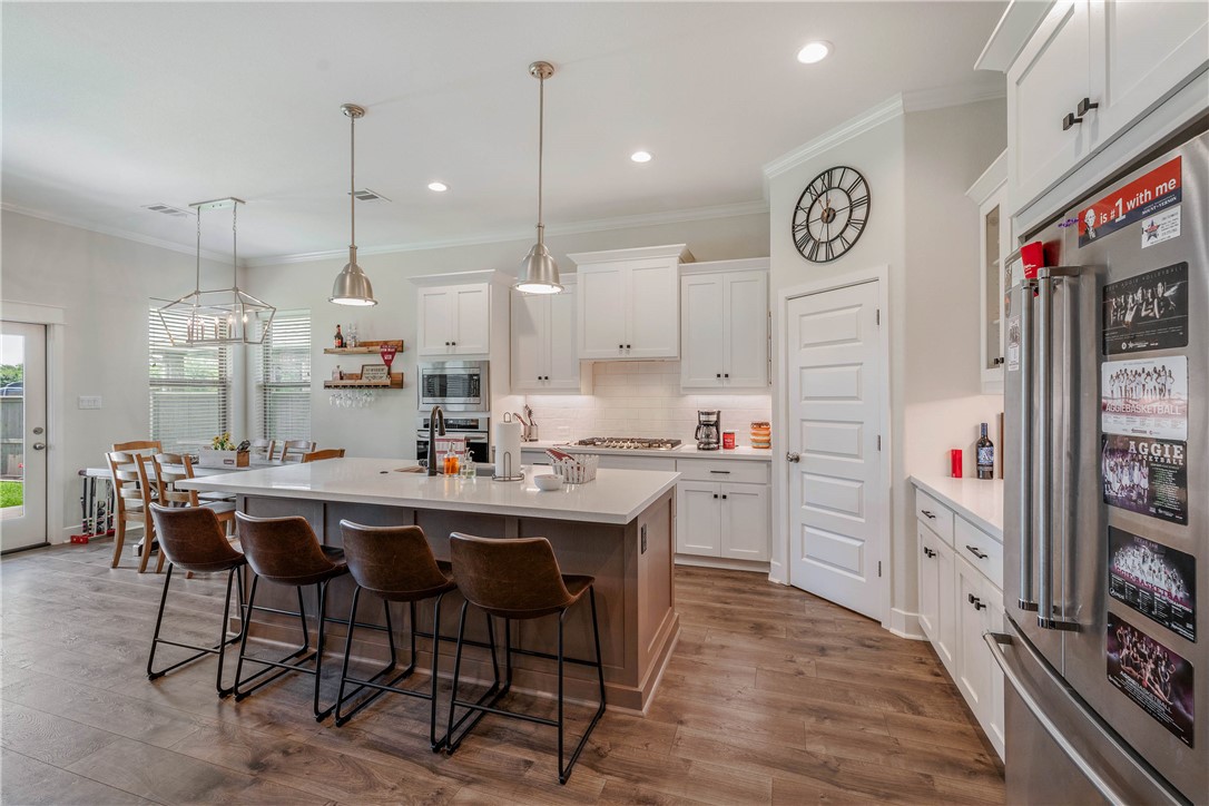 Sustainable Luxury in Oakmont's Premier Community. Discover sustainable luxury in this exquisite 3-bedroom, 2.5-bathroom home by RNL Homes, nestled in Bryan's prestigious Oakmont community. Featuring a two-car garage and a charming covered patio, this home seamlessly blends elegance with modern convenience. Step inside to find a spacious living area adorned with sleek hardwood floors, offering a perfect space for relaxation and entertainment. The gourmet kitchen is a chef's dream, equipped with stainless steel appliances, quartz countertops, and ample cabinet space. The master bedroom offers a serene retreat with an ensuite bathroom featuring a luxurious soaking tub and separate shower. Two additional bedrooms provide flexibility for guests or a home office. This home is equipped with solar panels, enhancing energy efficiency and reflecting a commitment to sustainable living. Oakmont residents enjoy unparalleled amenities including a community center, coffee shop, gym, and pools for all ages. Explore scenic walking trails or attend events at the community amphitheater amidst beautifully landscaped surroundings. Located near schools, parks, and shopping, this home offers luxury living with easy access to urban conveniences. Discover the Oakmont lifestyle —schedule your showing today and embrace the future of sustainable living!