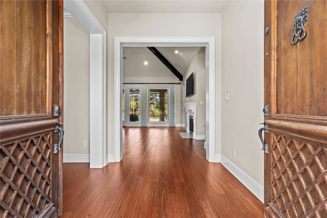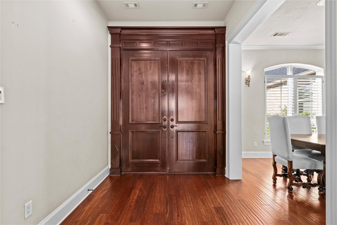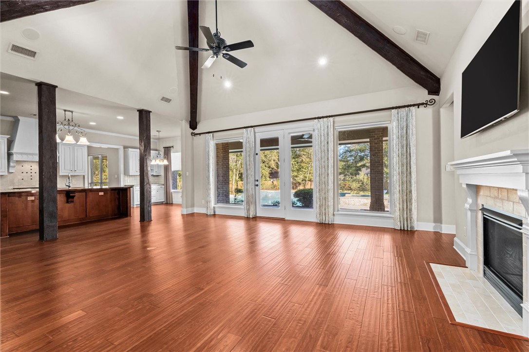 This French Country charm in Williams Creek will make you want to say "Qu'il fait bon de se retrouver chez soi!" Situated on an acre lot behind a horseshoe driveway, this chateau enchants with a grand entrance of large wooden double doors revealing a spacious great room adorned with cedar beams, a cathedral ceiling, and a cozy fireplace all bathing in natural light and resting upon beautiful wooden floors. The open floor plan leads seamlessly into the kitchen where you'll find a large island, custom cabinetry, and top of the line appliances from Kitchen Aide, including a six-burner cooktop, and double ovens awaiting your best culinary creations. The primary suite includes a separate sitting area, a large closet, and a bathroom fit for royalty. Additional areas include a guest suite, media room, and a bonus room off one of the upstairs bedrooms. Outdoor entertaining has unlimited potential with a large swimming pool, hot tub, covered patio, and plenty of room to roam in the extensive backyard.