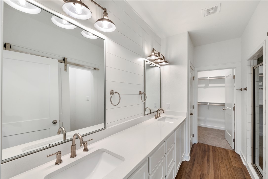 Stunning New Construction! This home features an open floor plan and a bright, modern farmhouse-style kitchen. Elevated ceilings with exposed beams enhance the living space, while subway tile showers and barn doors add charm to the bathrooms. Shiplap accent walls, neutral carpeting, and vinyl plank flooring create a perfect canvas for personalization. The laundry room, conveniently located off the 2-car garage, includes a sink and plenty of storage. Outside, a covered patio and fenced yard provide the perfect space for outdoor gatherings. Residents also enjoy Oakmont's impressive amenities, including a fitness center, cafe, pools, splash pad, sports fields, and hiking/biking trails.