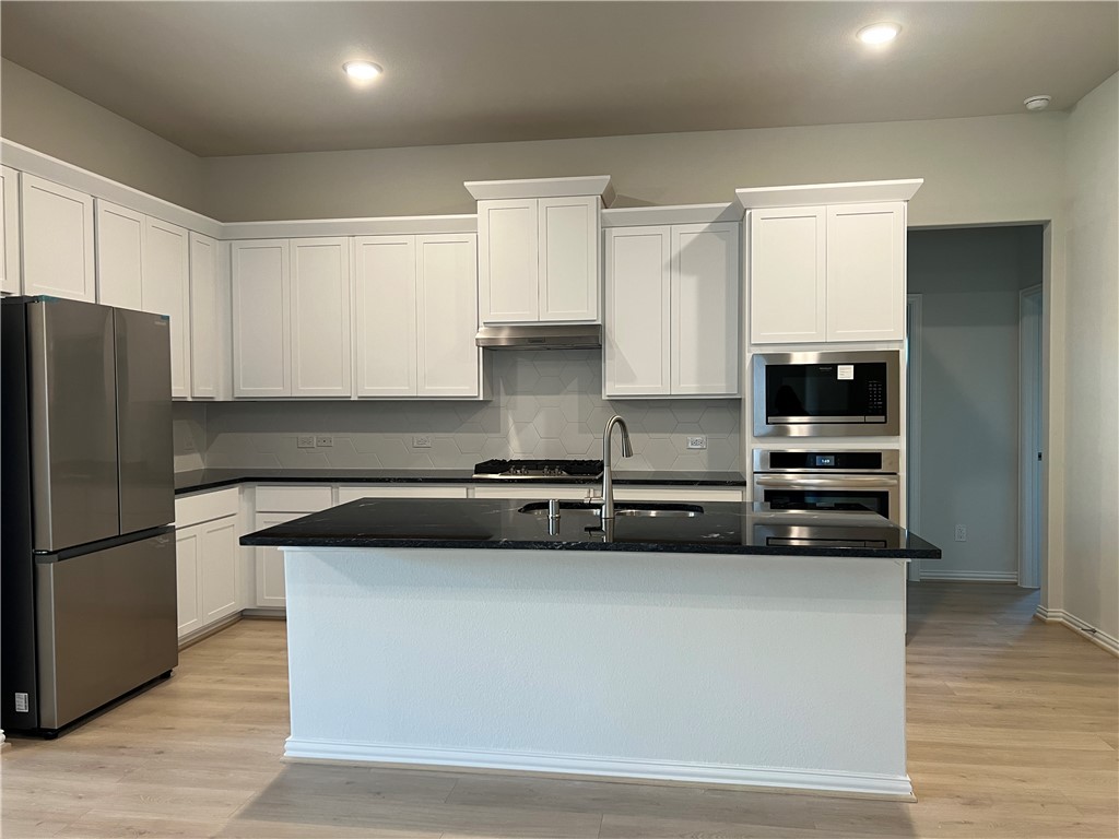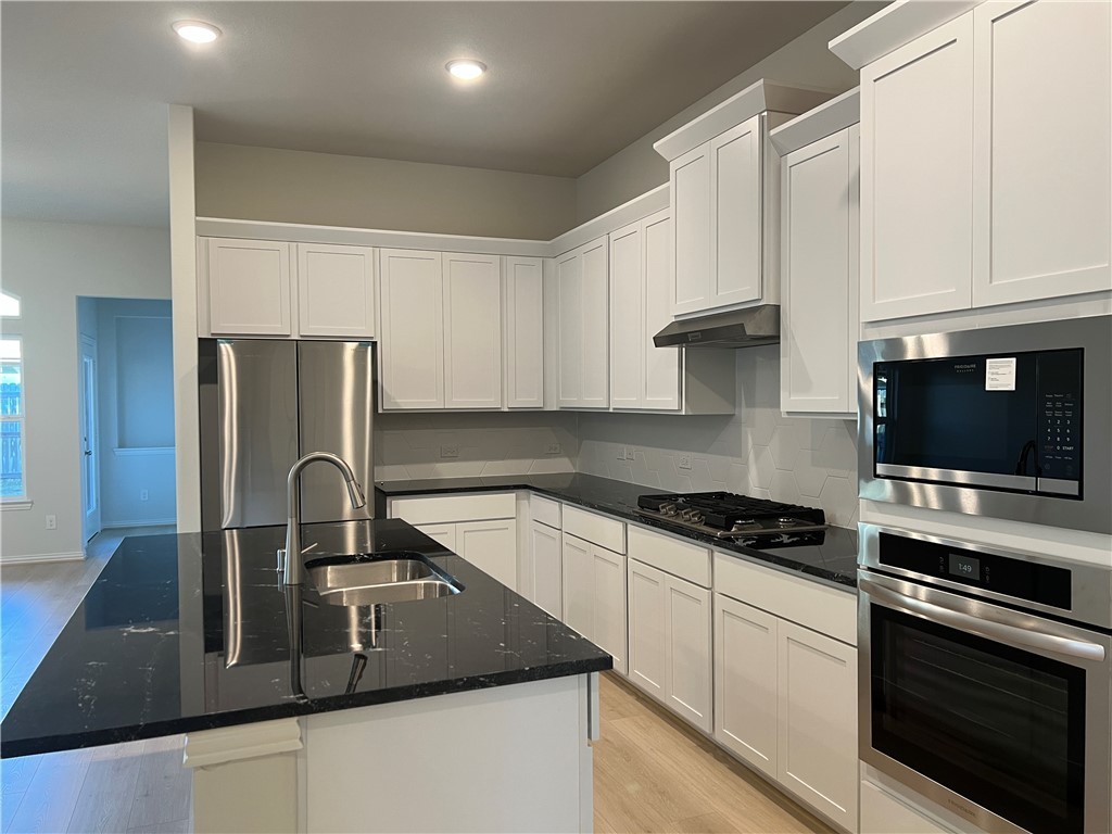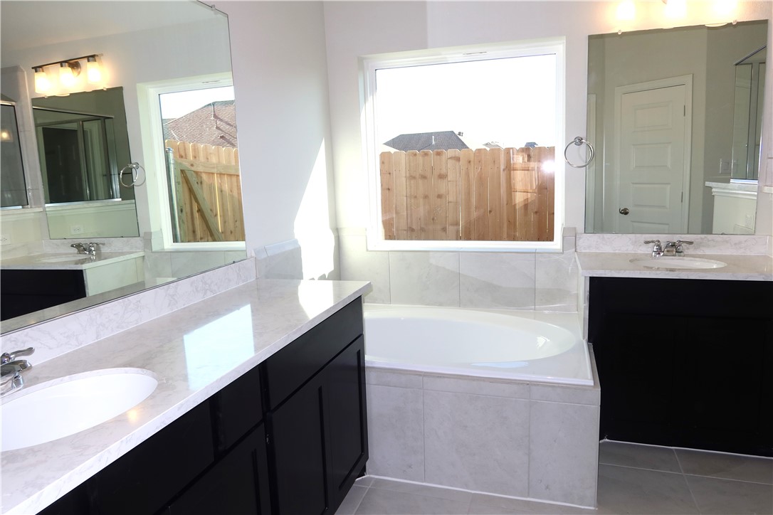 Brand new 4-bedroom, 3-bath with a spacious study room is availble for immediate move-in! Located in the highly sough-after and conenienetly situated Southern Pointe subdivision, this home combines modern design with functionality. Beautiful entry foyer with high ceilings and abundant natural light throughout. Upgraded kitchen featuring granite countertops, stainless steel appliances including a refrigerator, built-in microwave and oven, ample cabinet spaces, a pantry, and a stylish open-concept layout. Spacious split bedrooms. The master suite is a true retreat, featuring high ceilings, additional windows for enhanced natural light, and a luxurious ensuite with a separate shower, deep garden tub, double vanites, and a large walk-in closet. The house has a well-designed study room, perfect for remote work or a private retreat. Convenient utiltiy room equipped with a washer and dryer for your convenience. Fully fenced backyard with sod and an irrigation system included, simplifying lawn care. Prime location, this home is only about 3 miles from Tower Pointe HEB shopping center and Costco. It is easy access to State High 6 for convenient commuting and travel. Schedule your tour today!
