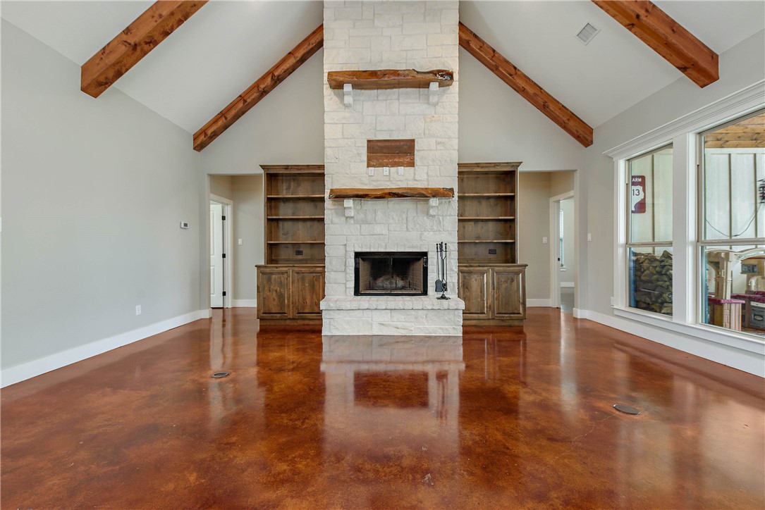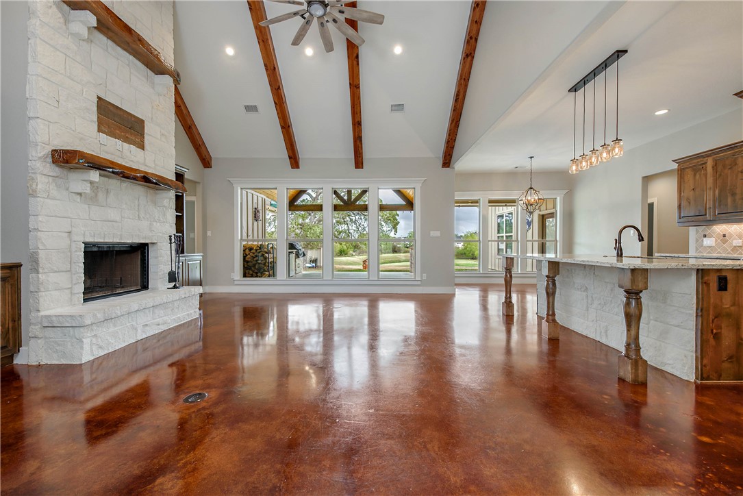 Welcome to your ideal country retreat, beautifully set on 1.53 acres in the charming Green Branch Subdivision. This remarkable home, built by 413 Custom Builders, combines stunning views with a tranquil lifestyle, less than 10 minutes from town. Step inside to discover an inviting open-concept living and kitchen space, highlighted by a soaring vaulted ceiling, custom finishes, and an impressive floor-to-ceiling fireplace. The gorgeous kitchen is a chef's dream featuring beautiful custom cabinets, granite countertops, a huge island, large walk in pantry and stainless steel appliances. Offering 4 spacious bedrooms and a bonus room that offers flexibility for a 5th bedroom, home office, playroom, complete with a third bathroom. The primary suite is a true haven, featuring a luxurious en-suite bathroom that connects seamlessly to an oversized walk-in closet and the laundry room—one of many exceptional features. Venture outside to relax on the expansive back porch, perfect for entertaining with a built-in grill. The property also includes a 20x20 workshop with a roll-up door, ideal for storage or hobbies. Enjoy the serenity of country living as you fish in the pond or explore the vast yard, perfect for your animals and outdoor adventures. Your peaceful oasis awaits—country living minutes from town with no city taxes! Call today to schedule a private tour.
