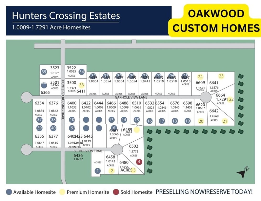 BUILD TO SUIT - LIVE YOUR BEST LIFE COUNTRY-SIDE IN THIS BRAND NEW MASTER PLANNED COMMUNITY IN HUNTERS CROSSING ESTATES IN BRYAN TEXAS. OFFERING 1+ ACRE HOMESITES TO BUILD YOUR "DREAM HOME" ON & ABOUT 7 MINUTES FROM HWY 6 ACCESS AND APPROX. 13 MILES FROM TEXAS ATM. THIS COMMUNITY FEATURES FIBER OPTIC HIGH SPEED INTERNET, PROPANE READY, ELECTRIC READY, PICK YOUR PLAN OR DESIGN IN HOUSE WITH BUILDER - GREAT SCHOOL DISTRICTS, COMMUNITY MAILBOXES, WIXON WATER, BTU FOR ELECTRIC, AEROBIC SYSTEMS, 50% MASONRY REQ, 1,800 MIN SF REQ. CALL NOW BEFORE YOU MISS OUT ON THIS RARE OPPORTUNITY TO GET INTO PHASE 2 HOMESITES. LOW LOW LOW PROPERTY TAXES IS A HUGE PLUS (1.37% IN 2024) ASK ABOUT BUILDER INCENTIVES GOING ON NOW! DO YOURSELF A FAVOR AND DRIVE OUT TO US AND TOUR THIS FANTASTIC COMMUNITY. SUNRISE/SUNSETS ARE AMAZING. Take Highway 6 heading NORTH and exit onto Highway 21 EAST then drive approx. 7 miles to FM 2776 turn RIGHT at LIGHT then travel 3.5 miles to Wilcox Lane which will be on your LT. Then go about a 1/2 mile down and Hunters Crossing Estates will be on your RT. ****BUILD TO SUIT****