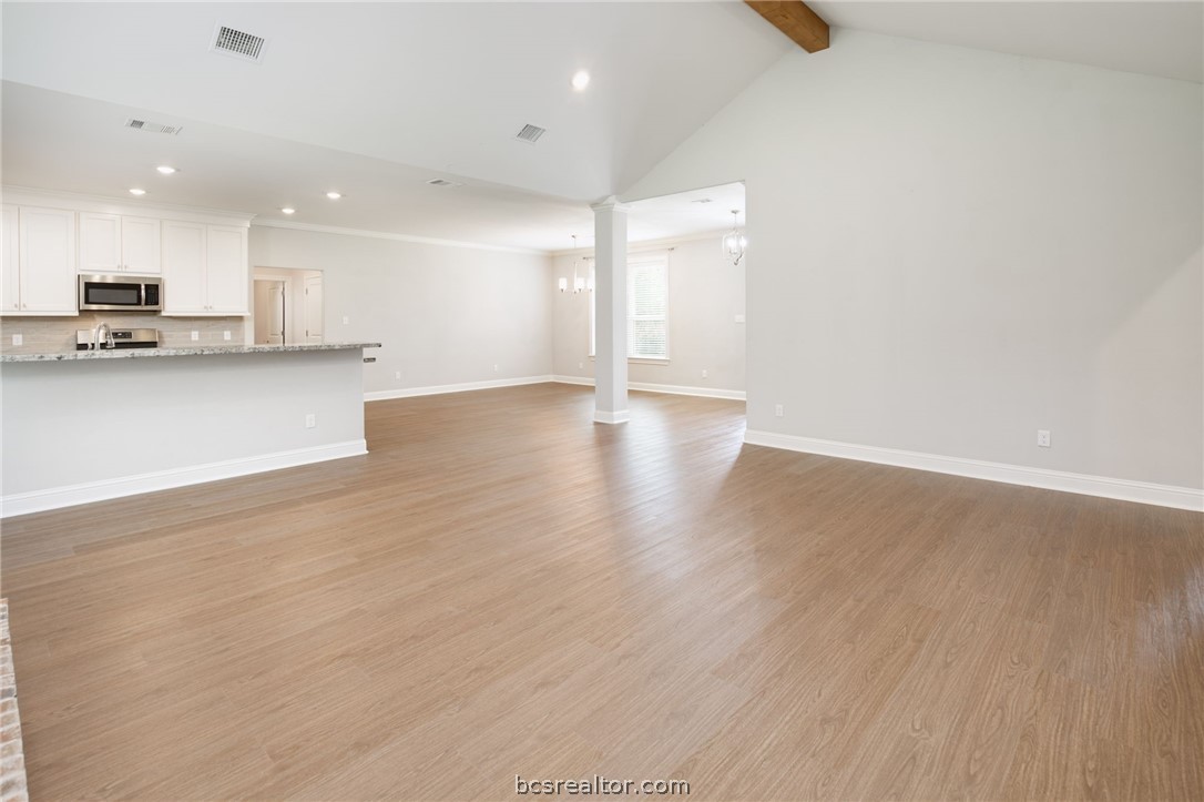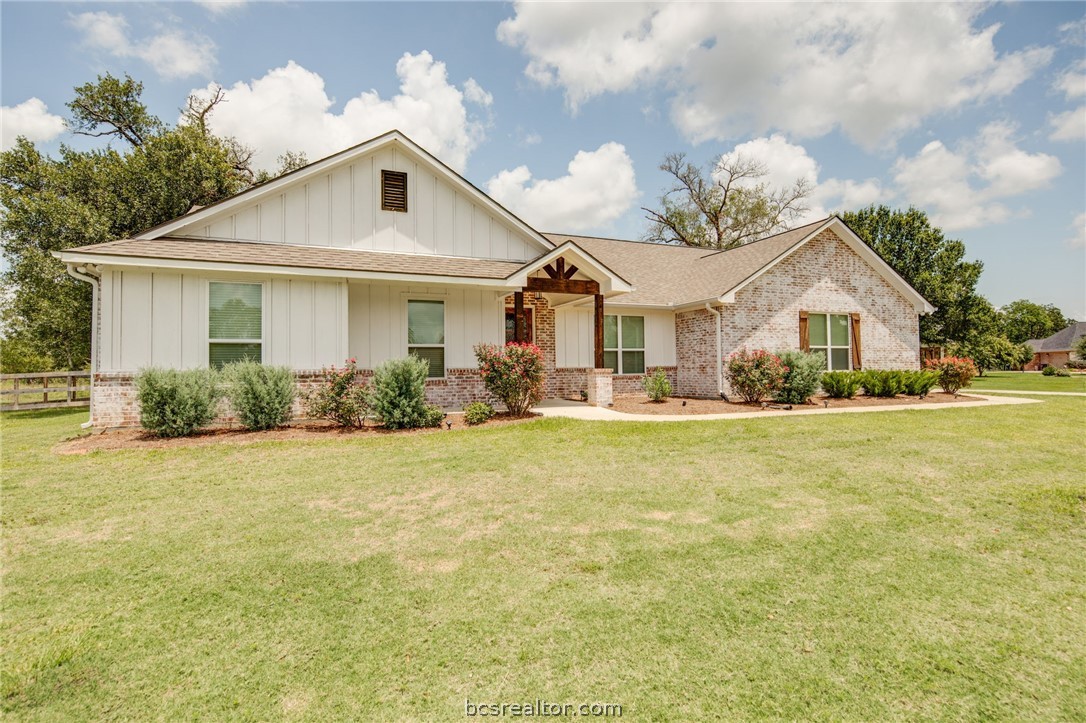 Don't pass up this wonderful custom-built gem tucked away on a quiet cul-de-sac in the sought-after King Oaks subdivision. Experience serenity just 15 minutes from Tower Point in College Station. The house has a functional and desired open-concept floor plan. There are three bedrooms and two bathrooms plus a study. The living room is large with a high vaulted ceiling with cedar beam to accent the inside and outside of the home. There is a huge eating bar area and plenty of storage space in the kitchen and throughout the house. The master suite has a walk-in shower plus garden tub, double vanities, and a sizeable walk-in closet which make the primary bedroom a special refuge. The evenings are wonderful on the back patio with one-of-a-kind views of the surrounding nature while backing up to a 100-acre ranch! A new roof, new insulated garage door with keypad, new bathroom faucets, new flooring throughout, freshly painted, and recently inspected septic pump and cleansing make this home ready to move into. The lot corners are staked with t-posts to indicate the lot line and any additional building for a workshop. The house is ready for move-in!